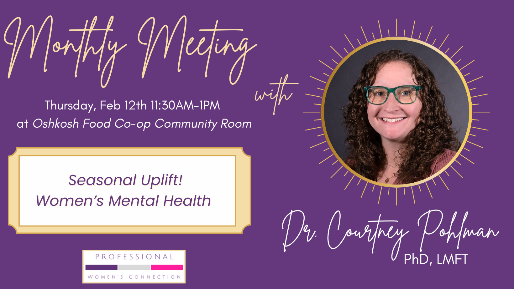 Dr. Pohlman will guide us through practical ways to support our mental wellness during the winter months, offering insight, encouragement, and tools we can actually use—no matter where we are in our careers or lives.